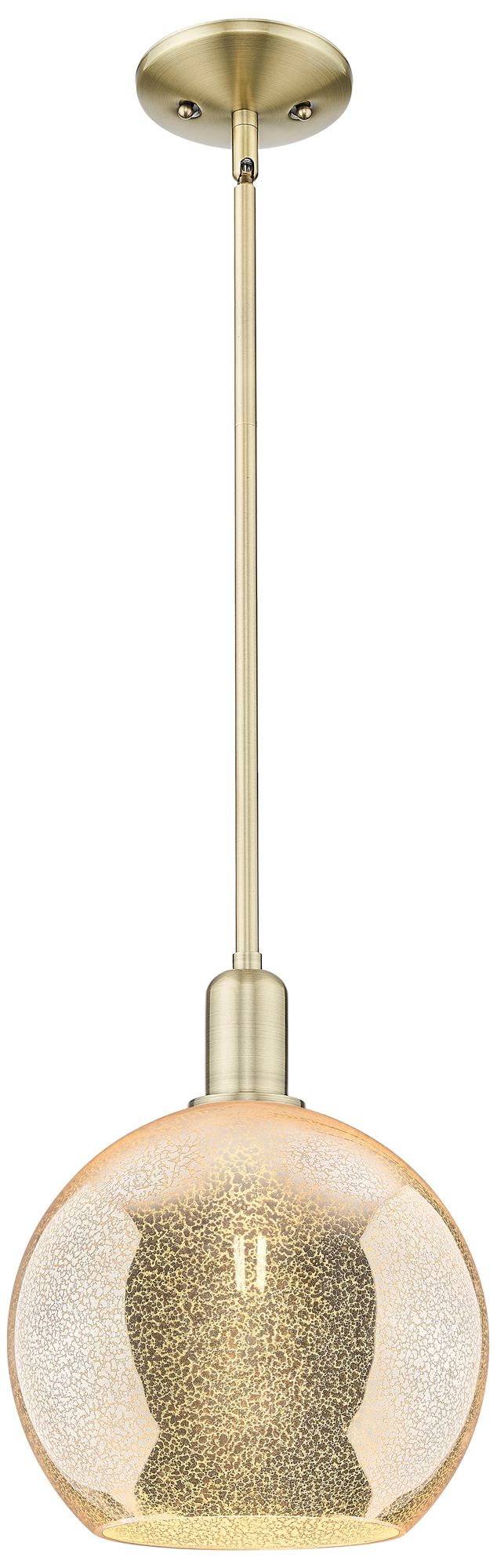 Arcadia Athens 10"W Brass Stem Hung Mini Pendant With Mercury Shade