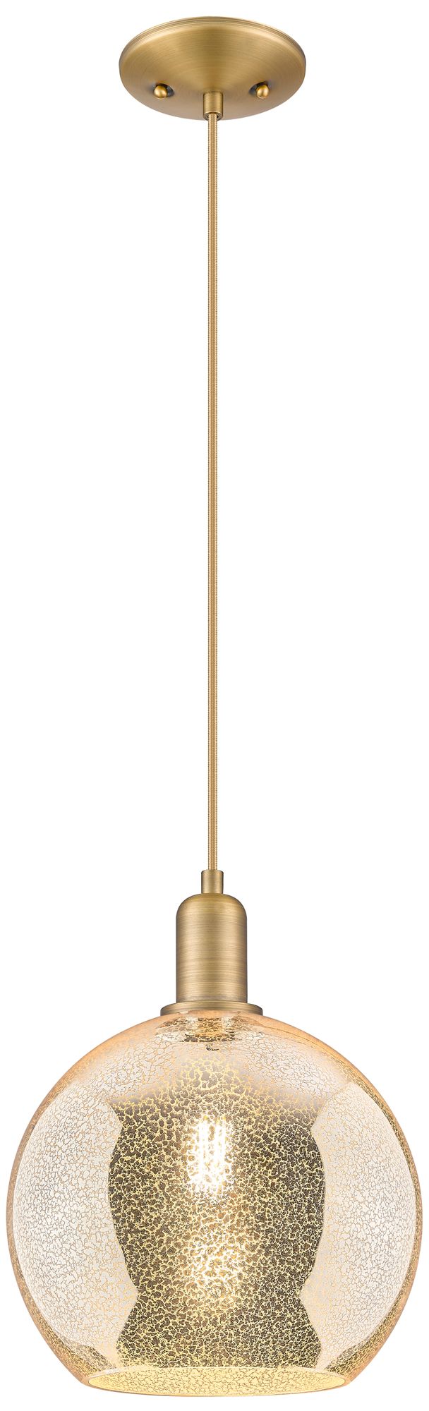 Arcadia Athens 10"W Brushed Brass Cord Mini Pendant w/ Mercury Shade