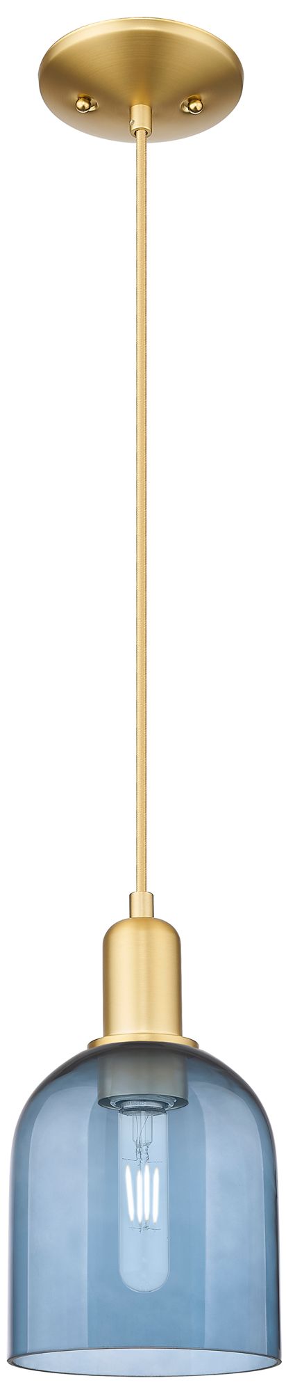 Arcadia Bella 6"W Satin Gold Cord Hung Mini Pendant With Blue Shade