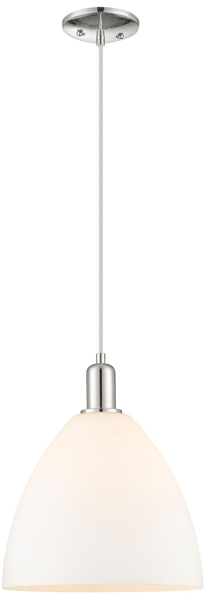 Arcadia Bristol 12"W Polished Nickel Cord Pendant w/ Matte White Shade