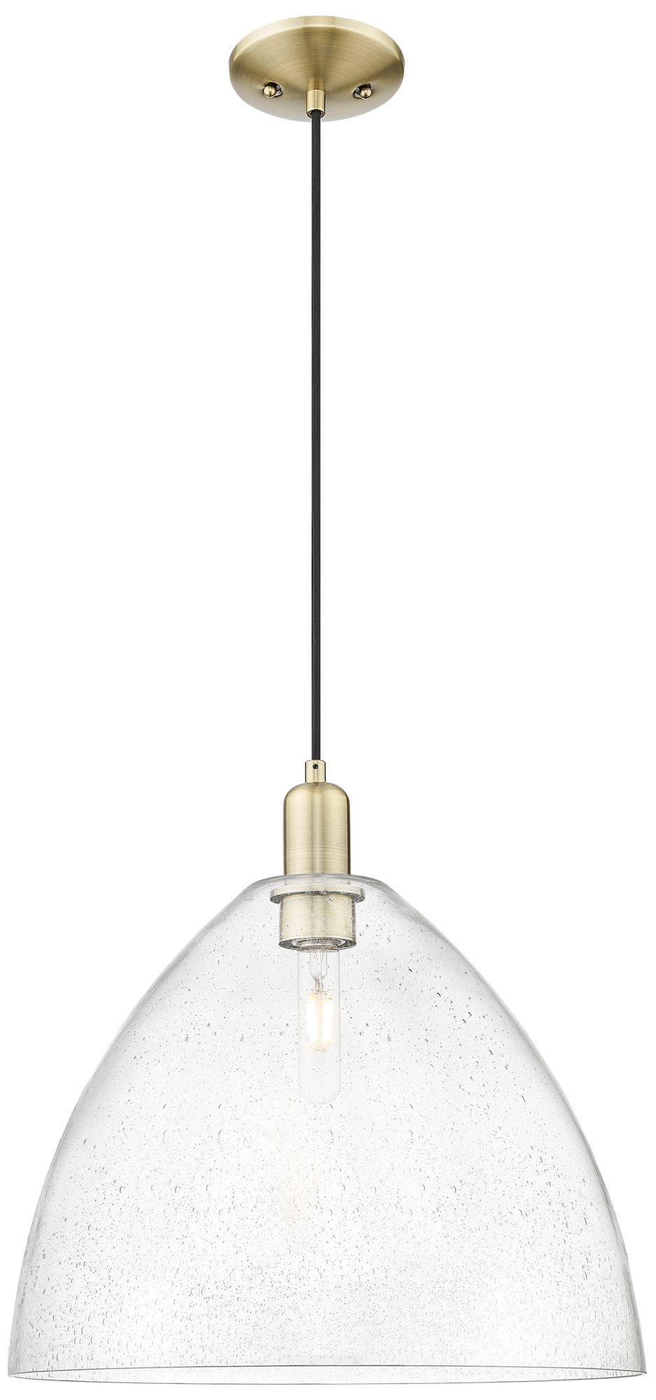 Arcadia Bristol 16"W Brass Cord Hung Mini Pendant With Seedy Shade