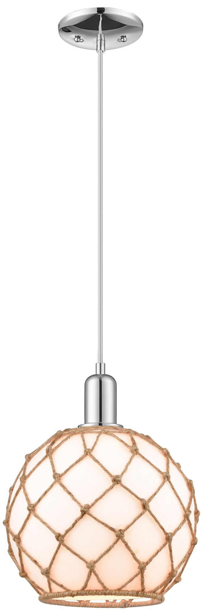 Arcadia Farmhouse Rope 10"W Chrome Cord Pendant w/ White Brown Shade