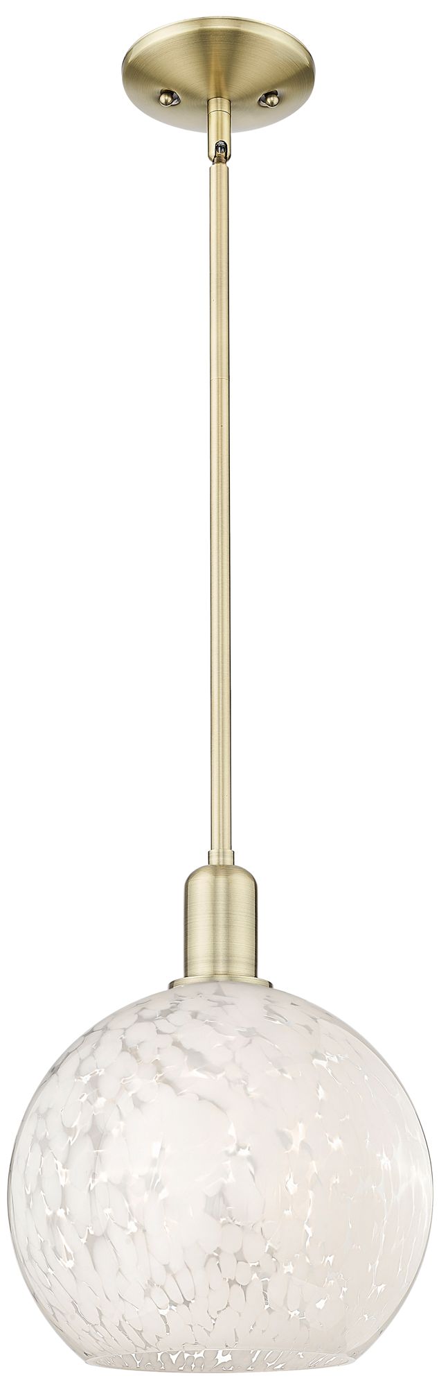 Arcadia White Mouchette 10" Wide Antique Brass Stem Hung Mini Pendant
