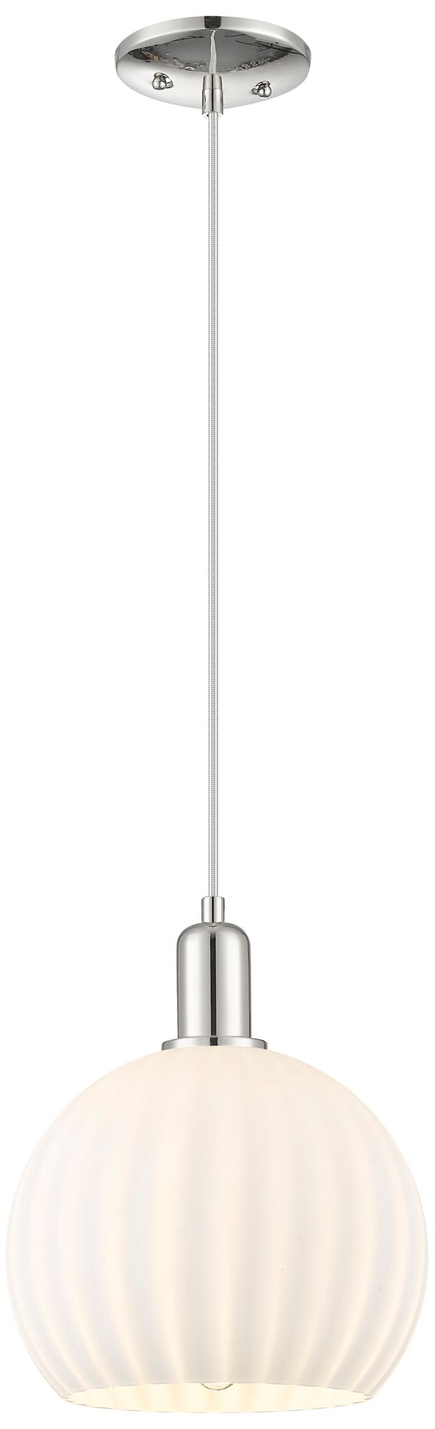 Arcadia White Venetian 10" Wide Polished Nickel Cord Hung Mini Pendant