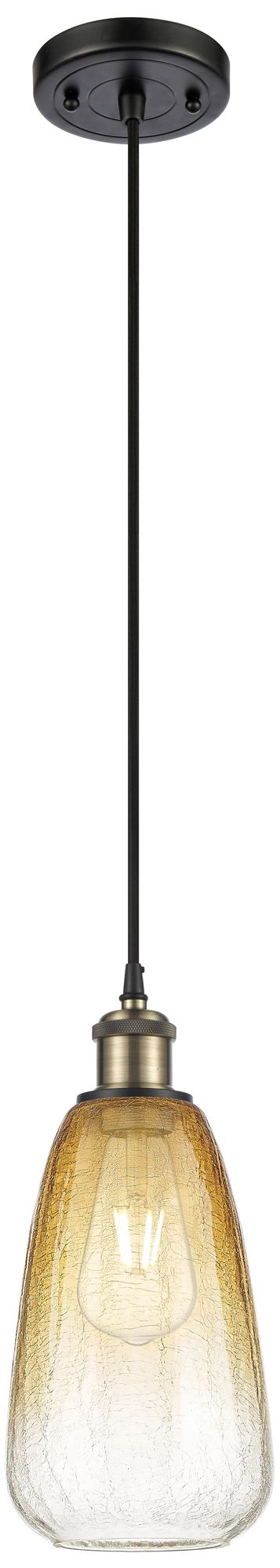 Ballston Brookhaven Almond 6"W Black Brass Cord Pendant w/ Amber Shade