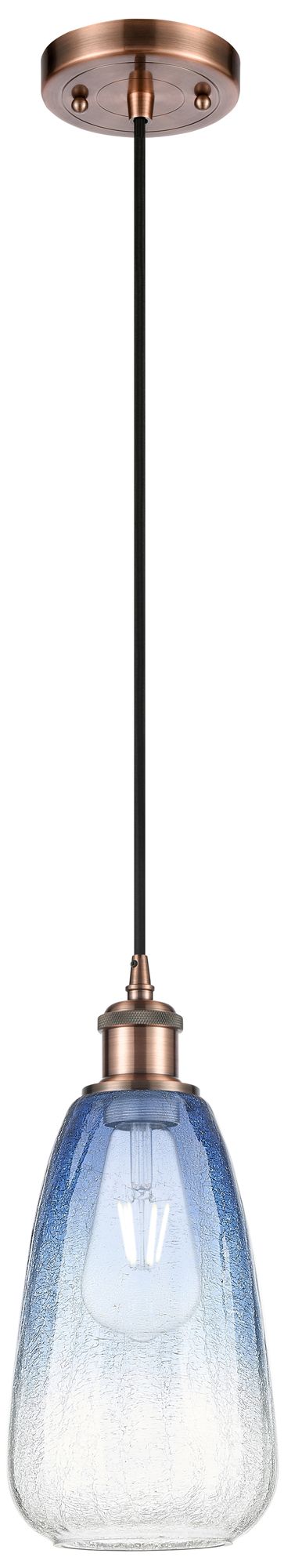 Ballston Brookhaven Flute 7"W Copper Cord Pendant w/ Sapphire Shade