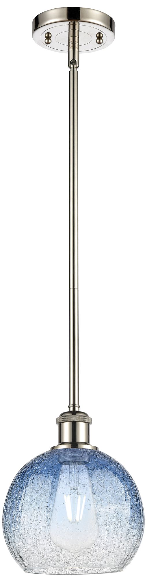 Ballston Brookhaven Globe 8"W Nickel Stem Pendant w/ Sapphire Shade
