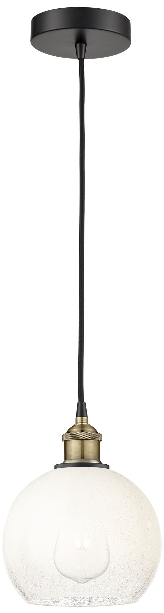 Edison Brookhaven Globe 8"W Black Brass Cord Pendant w/ Opal Shade