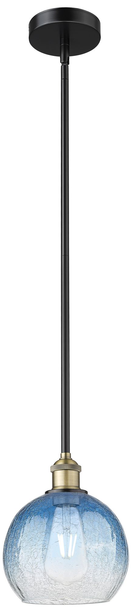 Edison Brookhaven Globe 8"W Black Brass Stem Pendant w/ Sapphire Shade