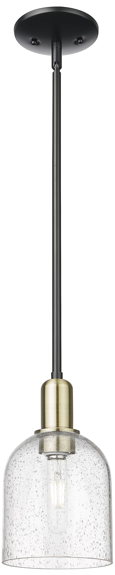 Arcadia Bella 6"W Black Brass Stem Hung Mini Pendant w/ Seedy Shade