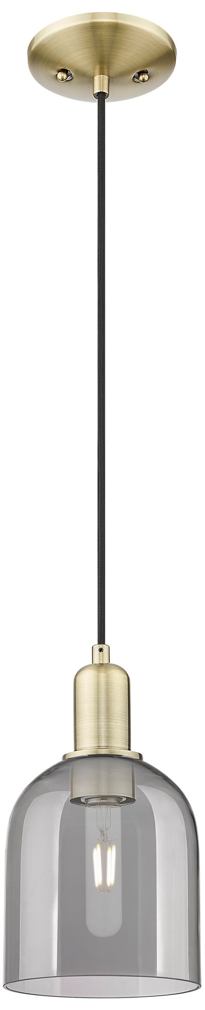 Arcadia Bella 6"W Brass Cord Hung Mini Pendant With Light Smoke Shade