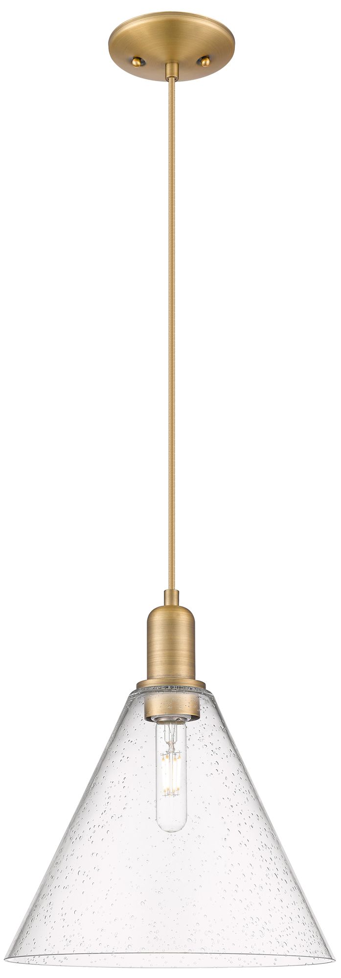 Arcadia Berkshire Glass 12"W Brushed Brass Cord Pendant w/ Seedy Shade