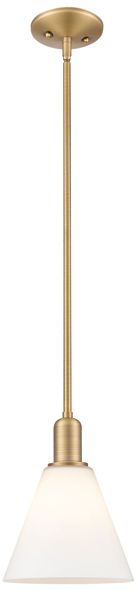 Arcadia Berkshire Glass 8"W Brushed Brass Stem Pendant w/ White Shade