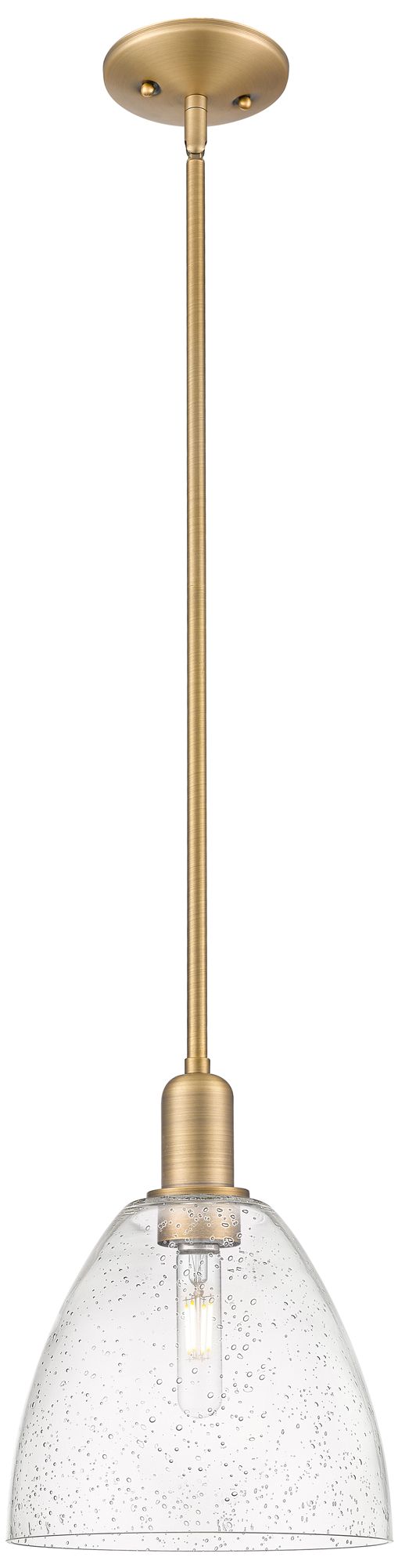 Arcadia Bristol 9"W Brushed Brass Stem Mini Pendant w/ Seedy Shade