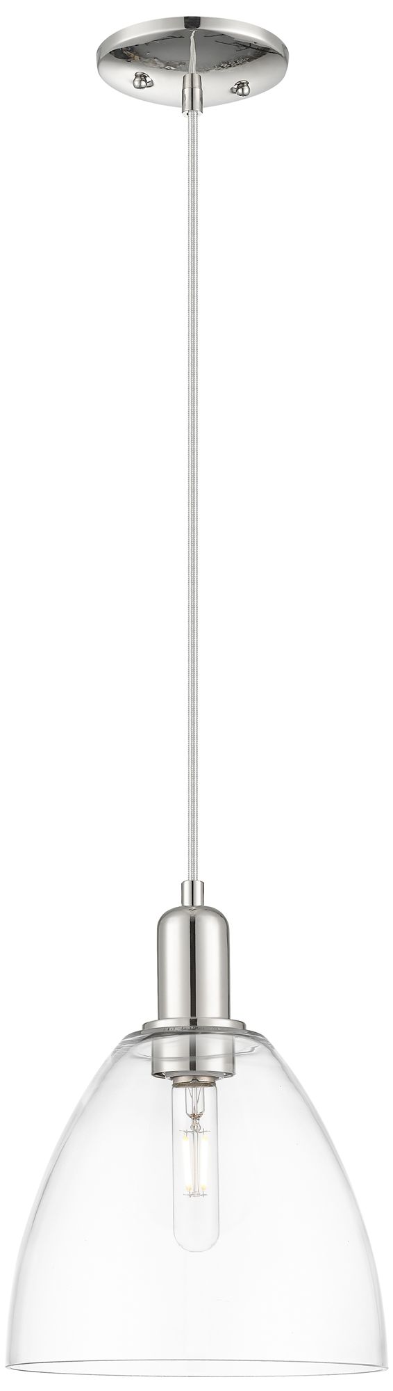 Arcadia Bristol 9"W Polished Nickel Cord Mini Pendant w/ Clear Shade
