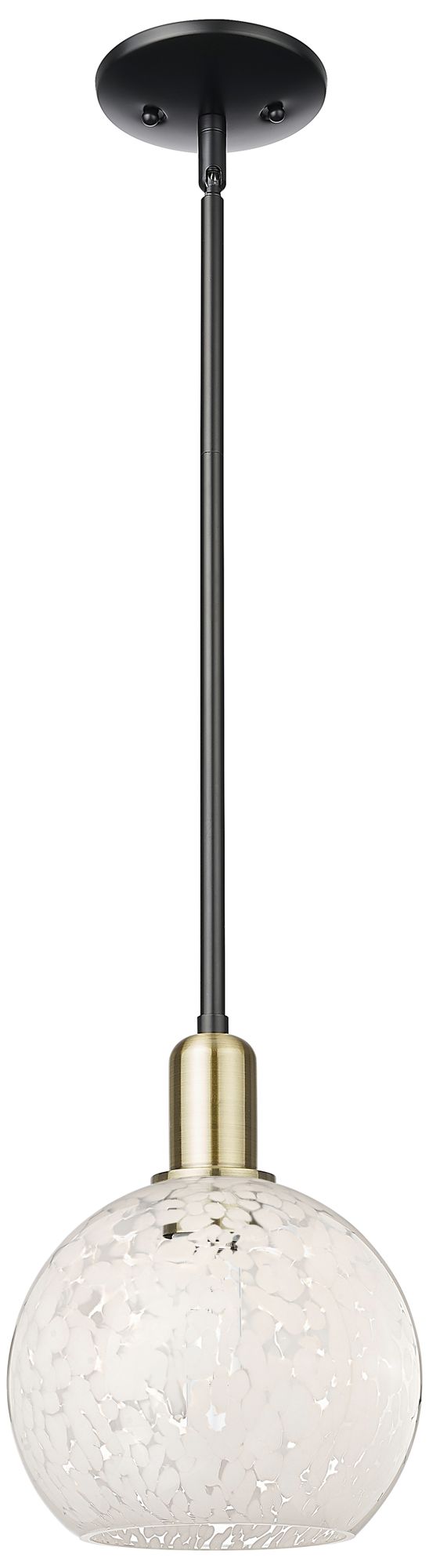 Arcadia White Mouchette 8"W Black Antique Brass Stem Hung Mini Pendant