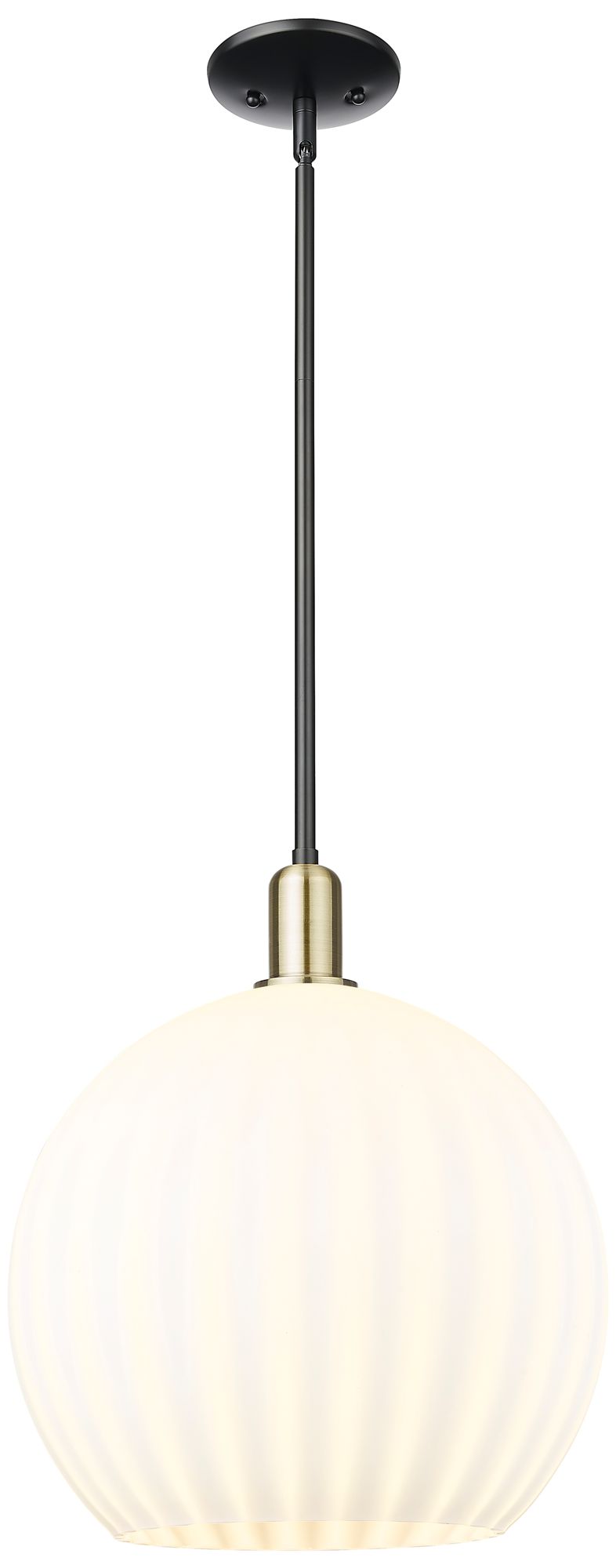 Arcadia White Venetian 14"W Black Antique Brass Stem Hung Mini Pendant