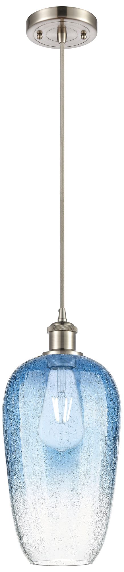 Ballston Brookhaven Flute 7"W Nickel Cord Pendant w/ Sapphire Shade