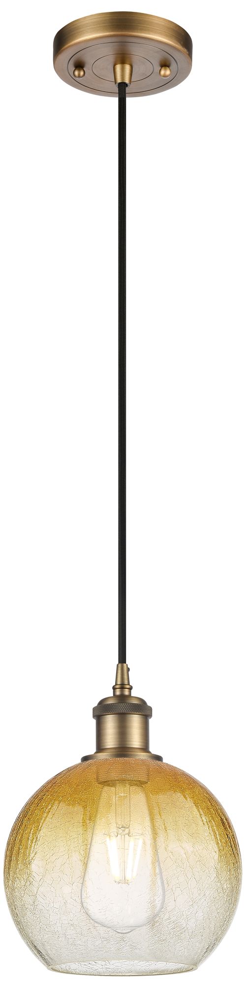 Ballston Brookhaven Globe 8"W Brushed Brass Cord Pendant w/ Amber Shade