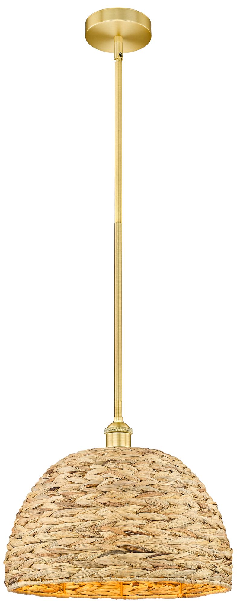 Edison Woven Rattan 16" Wide Satin Gold Stem Hung Mini Pendant With