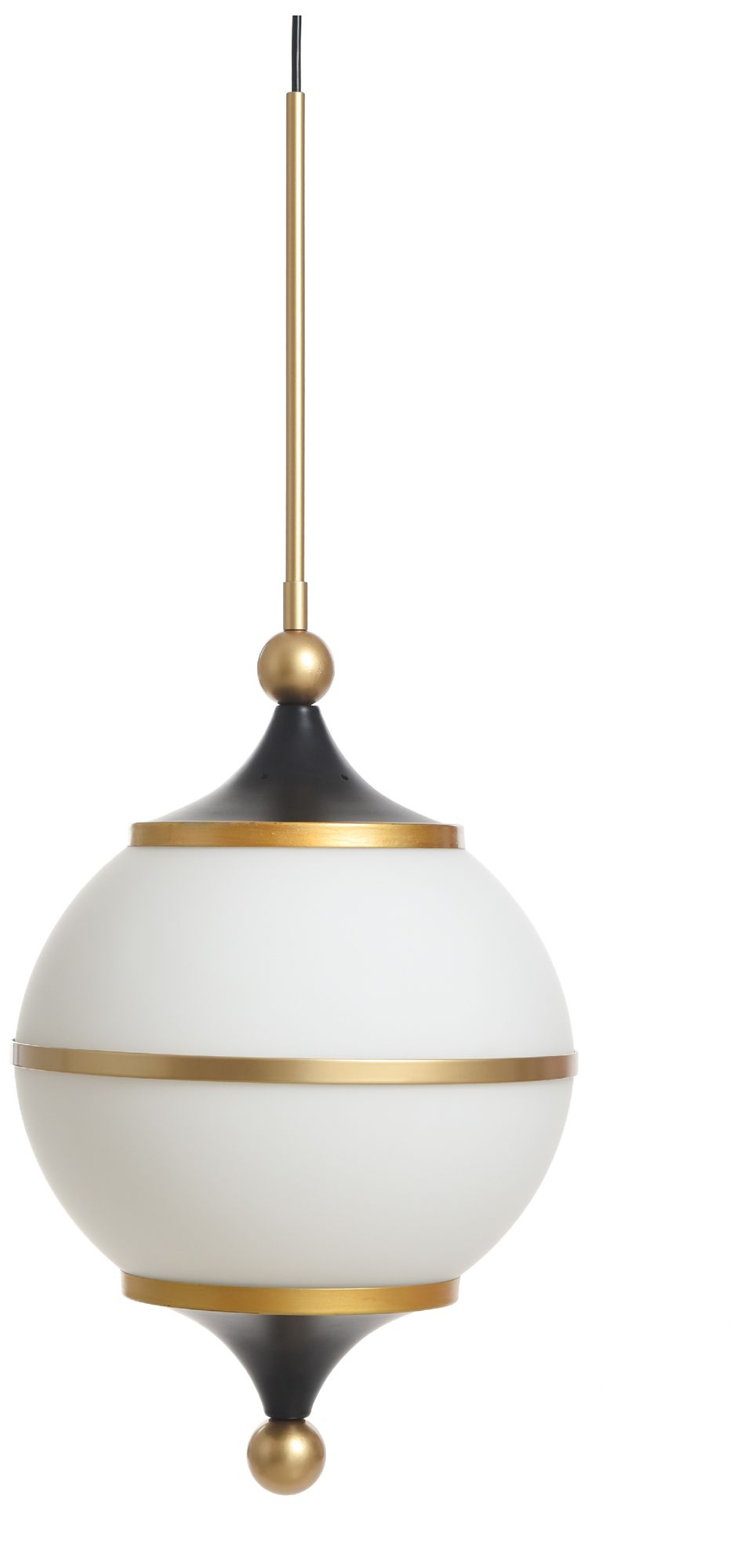 Harp & Finial Bendict 14"W Black Gold Milk Pendant w/ Milk White Shade