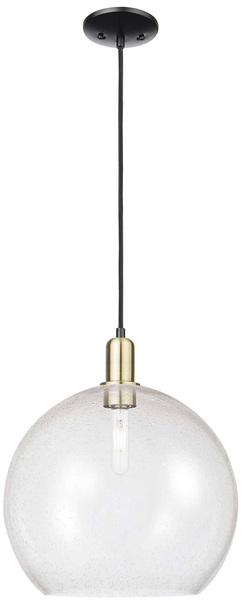 Arcadia Athens 14"W Black Brass Cord Hung Mini Pendant w/ Seedy Shade