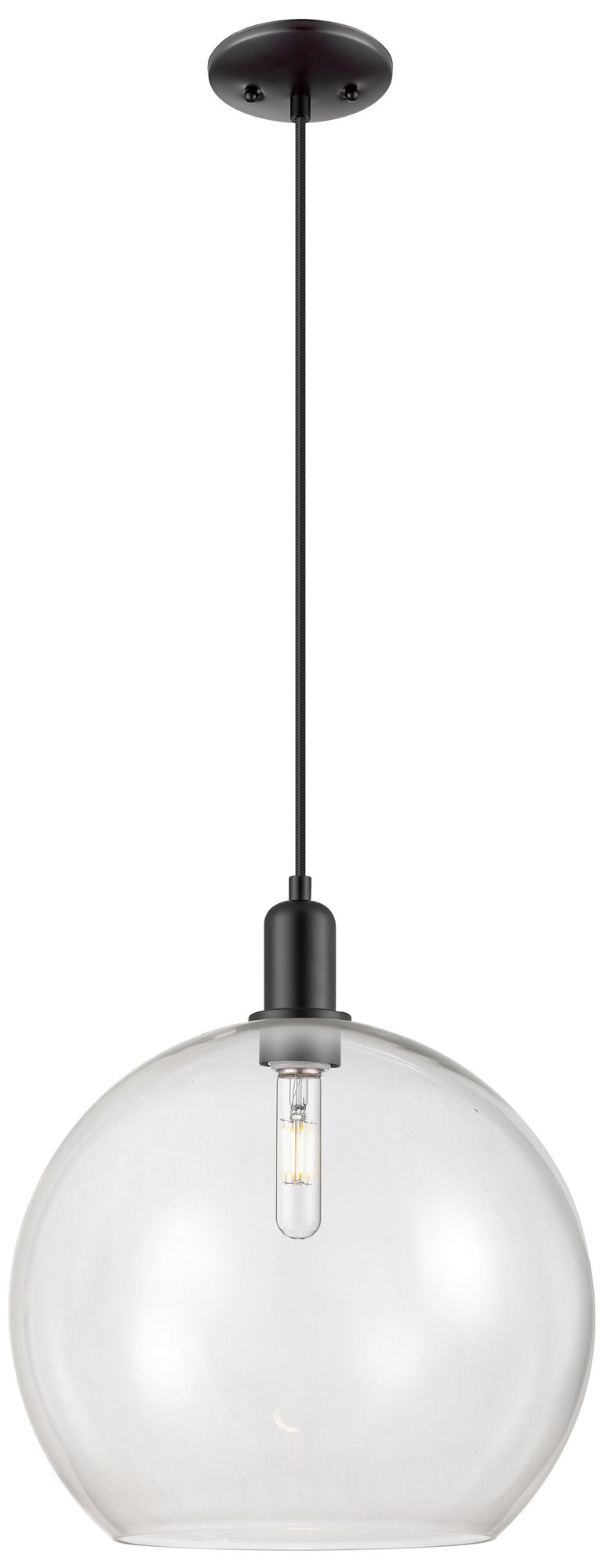 Arcadia Athens 14"W Matte Black Cord Hung Mini Pendant w/ Clear Shade