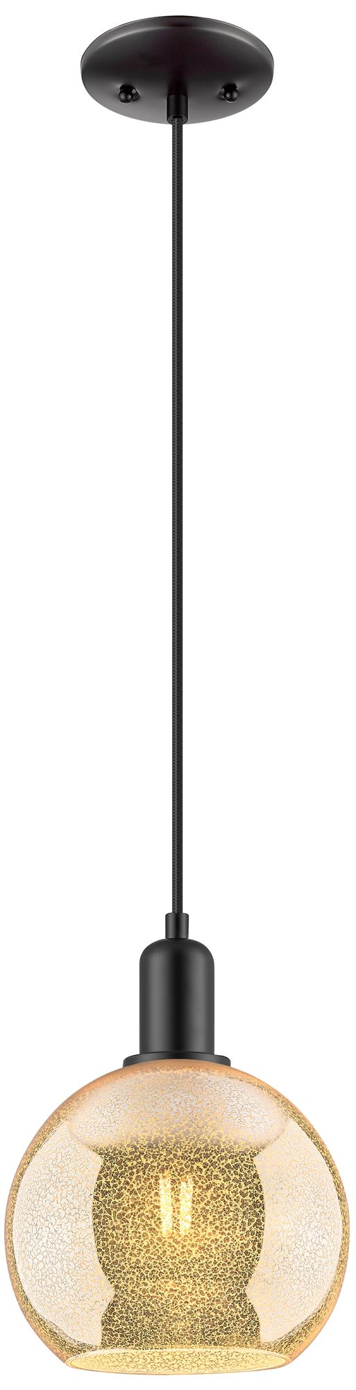 Arcadia Athens 8"W Matte Black Cord Hung Mini Pendant w/ Mercury Shade
