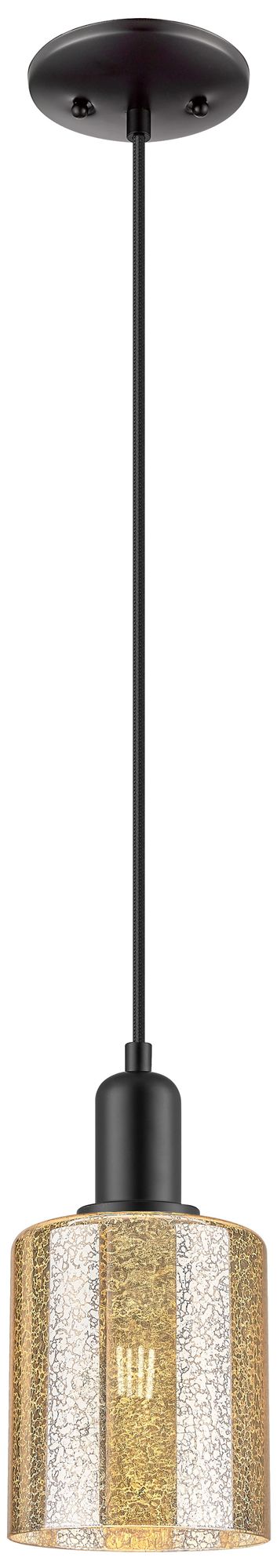 Arcadia Cobbleskill 5"W Black Cord Hung Mini Pendant w/ Mercury Shade