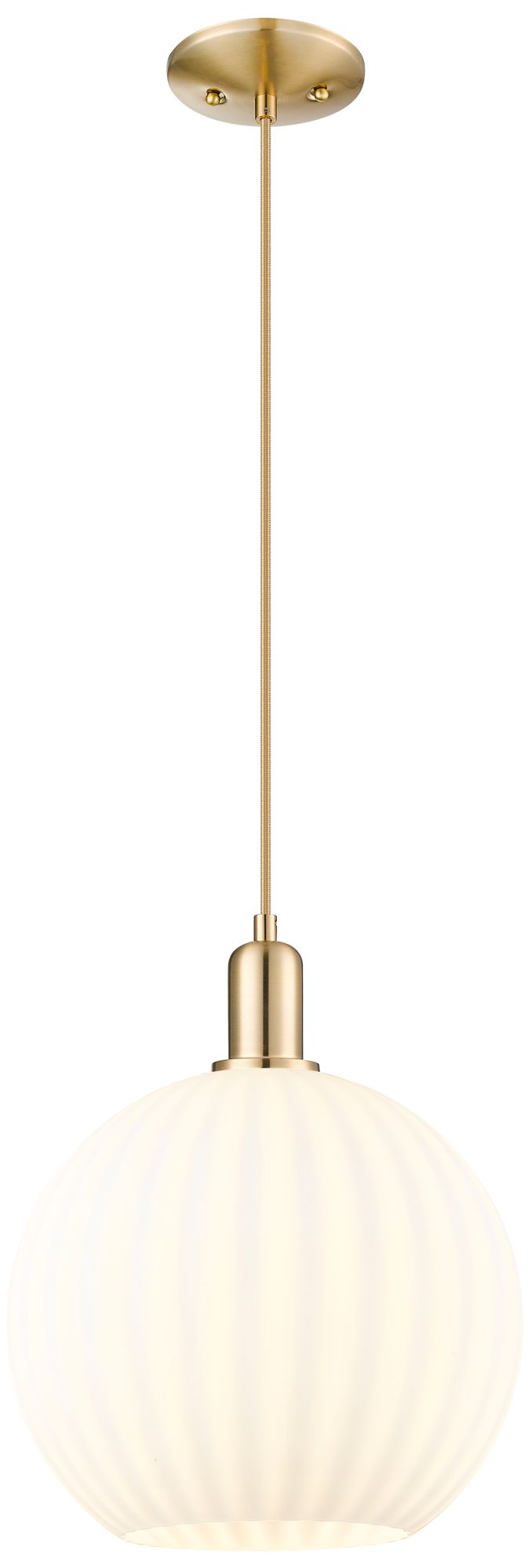 Arcadia Berkshire Glass 16"W Brushed Brass Stem Pendant w/ White Shade