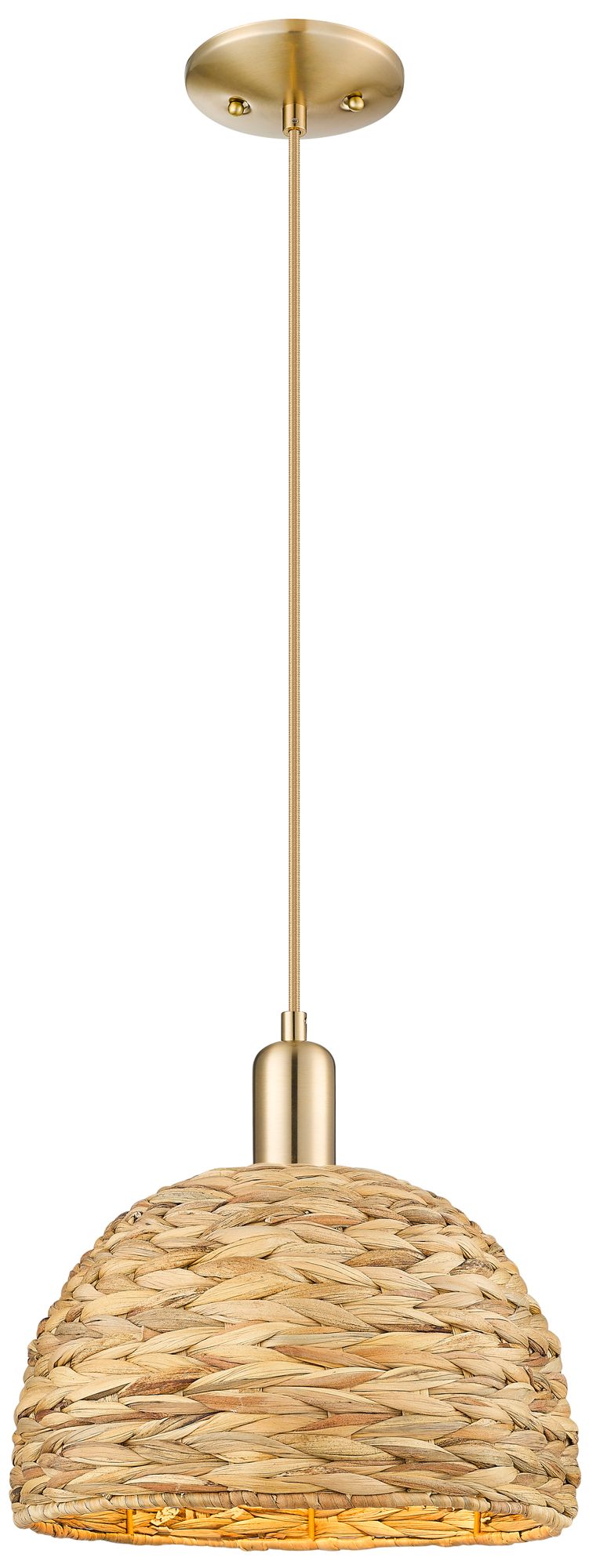 Arcadia Woven Rattan 12" Wide Champagne Bronze Cord Hung Mini Pendant