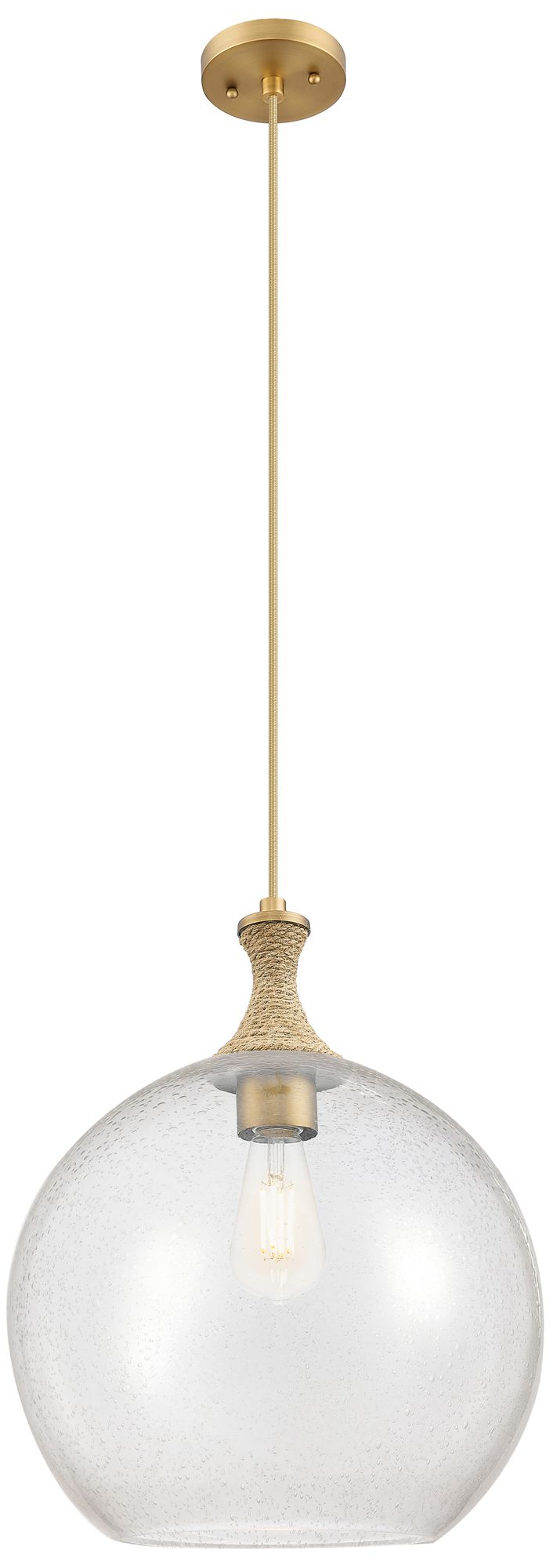 Astor 14"W Brushed Brass And Brown Rope Cord Pendant With Seedy Shade