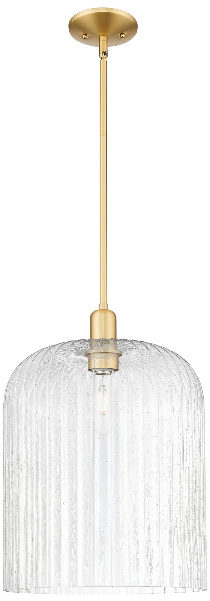 Bridal Veil 12" Wide Satin Gold Stem Hung Mini Pendant With Seedy Shade