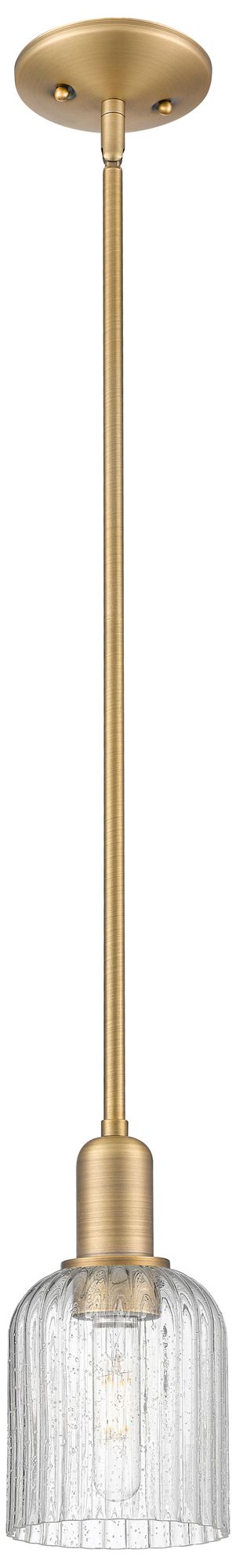 Bridal Veil 5"W Brushed Brass Stem Hung Mini Pendant With Seedy Shade