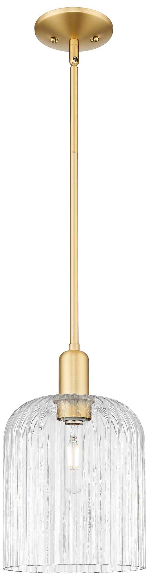 Bridal Veil 8" Wide Satin Gold Stem Hung Mini Pendant With Clear Shade