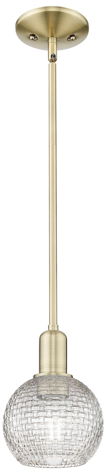 Arcadia Athens 6"W Brass Stem Mini Pendant w/ Clear Basket Weave Shade