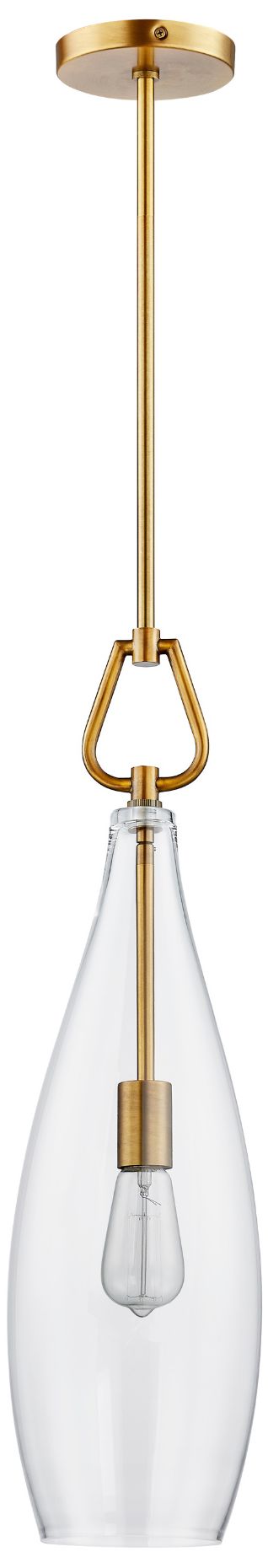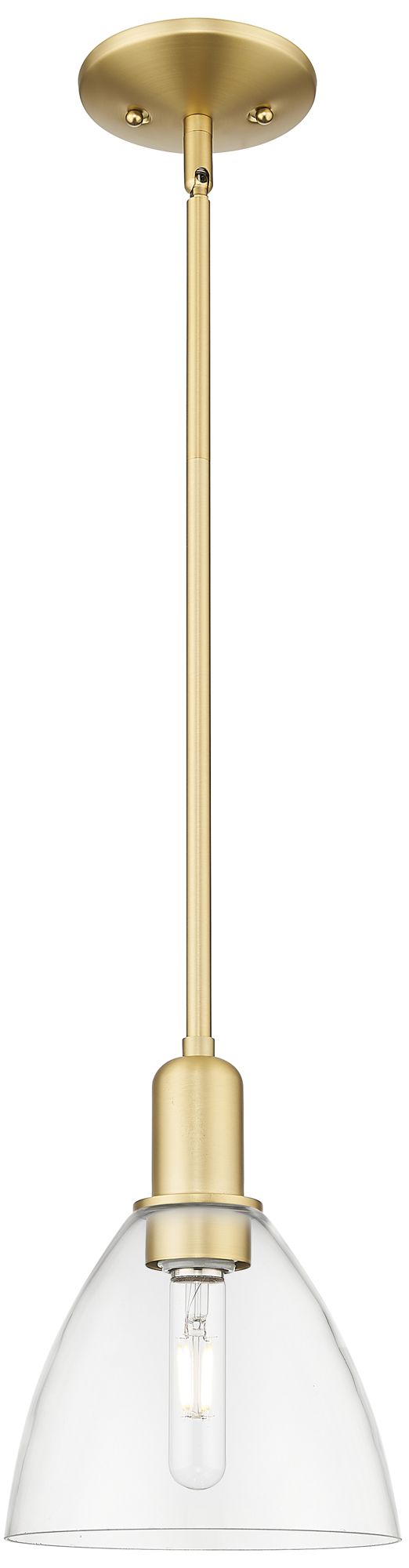 Arcadia Bristol 8"W Satin Gold Stem Hung Mini Pendant With Clear Shade