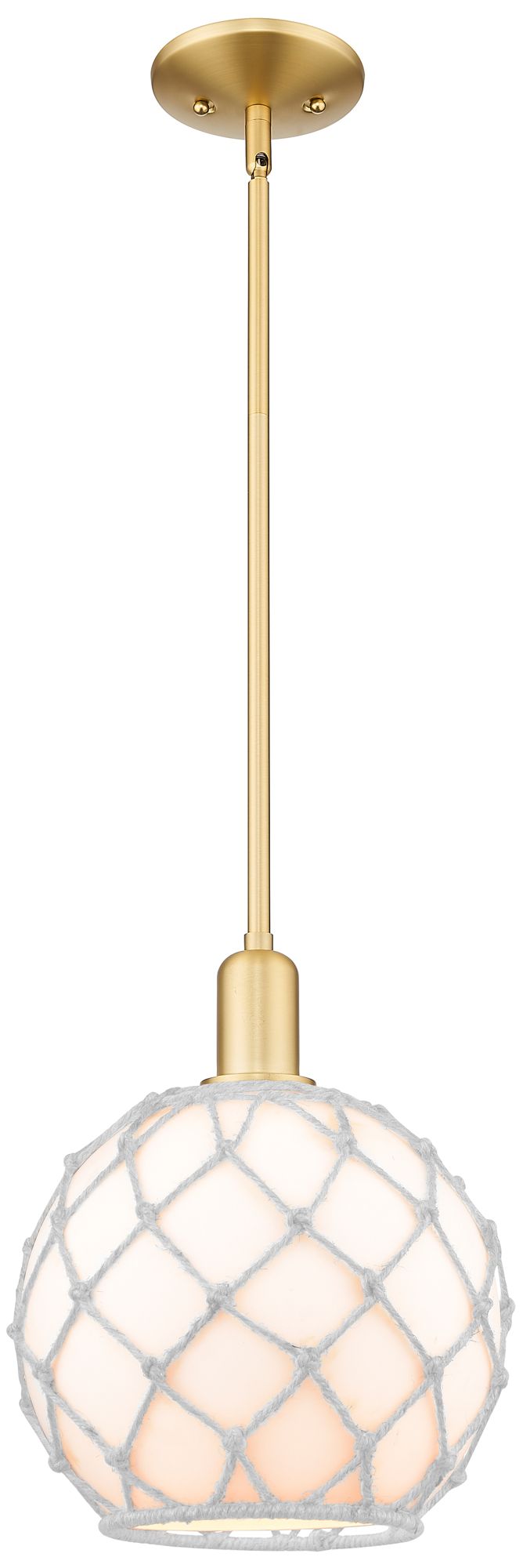 Arcadia Farmhouse Rope 10"W Gold Stem Pendant w/ White Glass Shade
