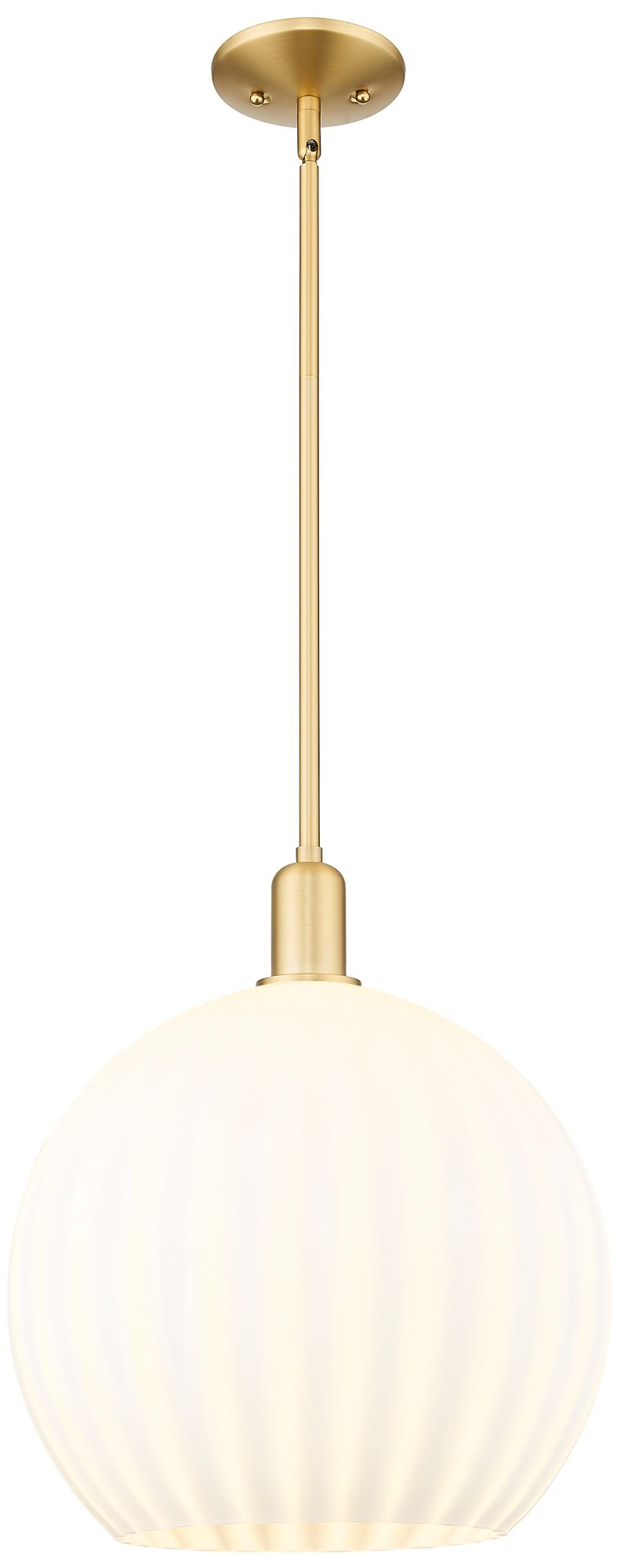 Arcadia White Venetian 14" Wide Satin Gold Stem Hung Mini Pendant