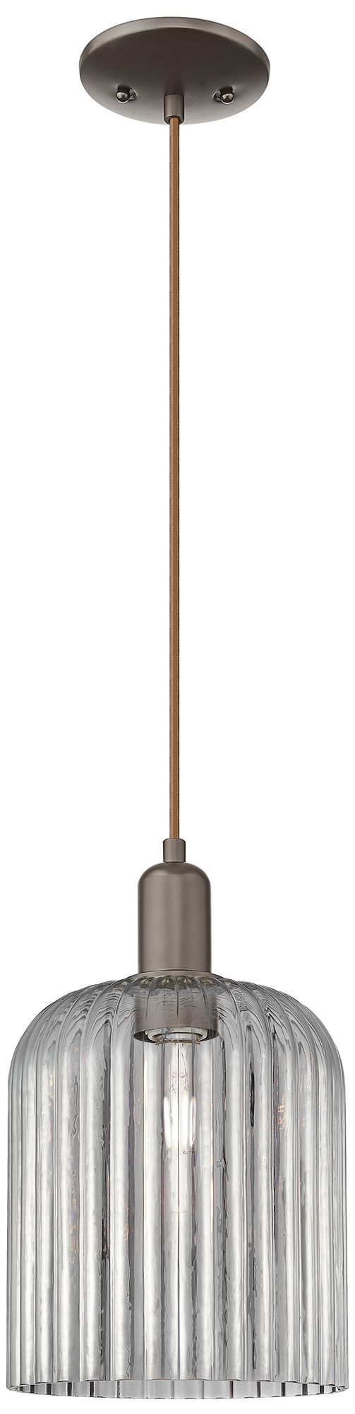 Bridal Veil 8"W Oil Rubbed Bronze Cord Mini Pendant w/ Smoke Shade