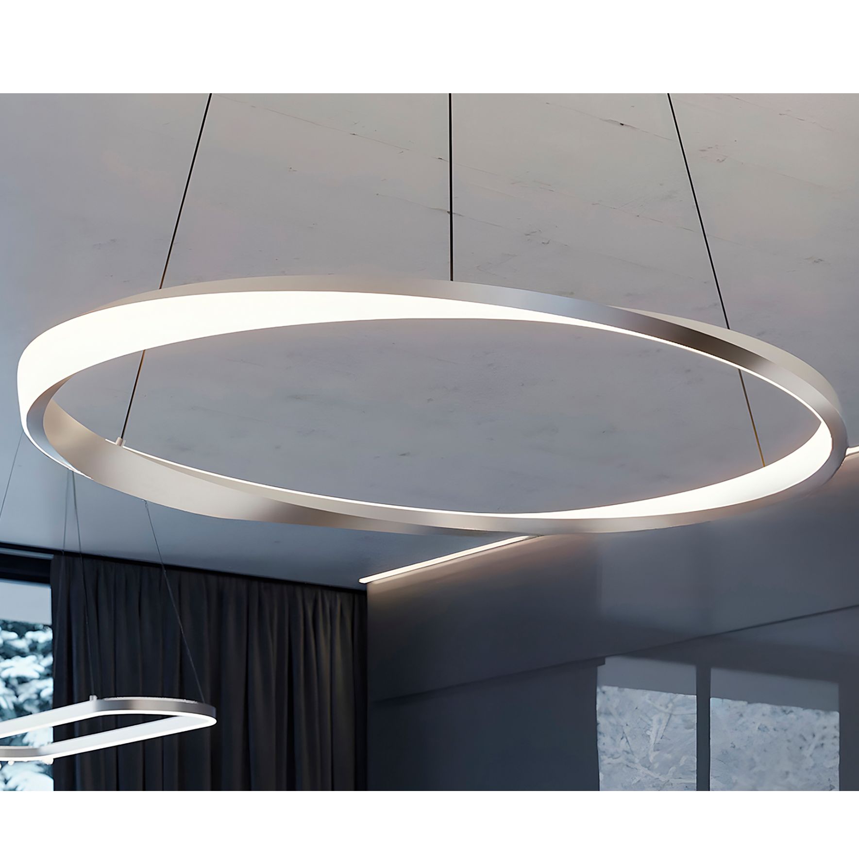 Oberon 40" Wide Satin Nickel Single LED Pendant with White Acrylic Shade