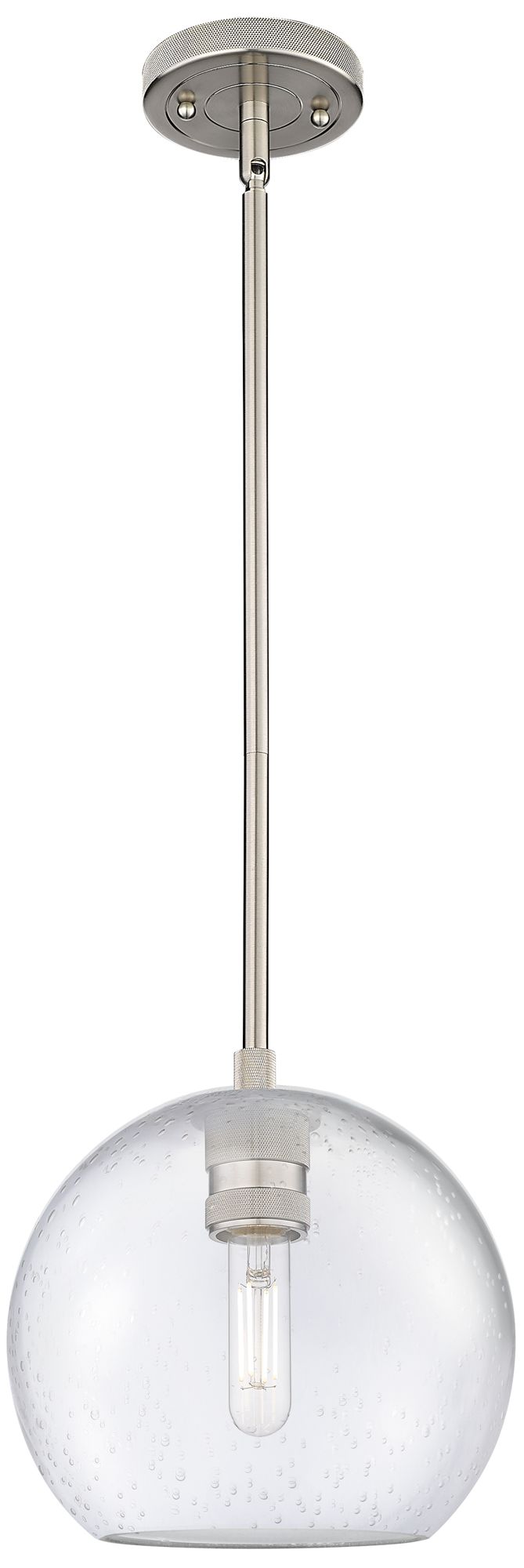 Crown Point Athens 8"W Satin Nickel Stem Hung Pendant With Seedy Shade