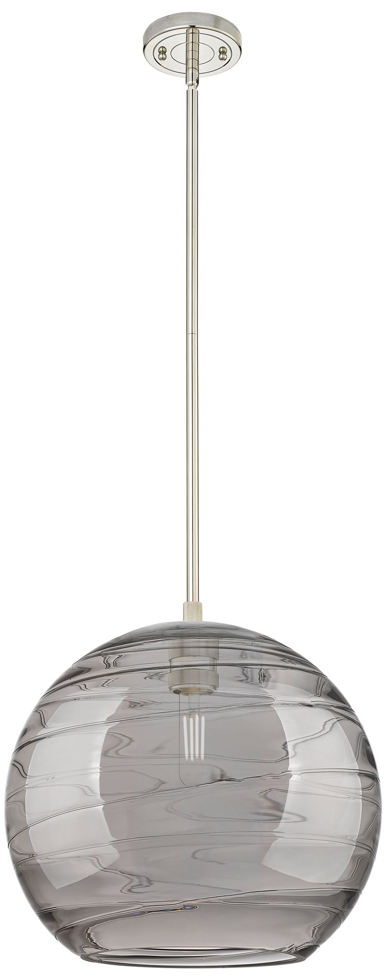 Crown Point Athens Deco Swirl 12"W Nickel Stem Pendant w/ Smoke Shade