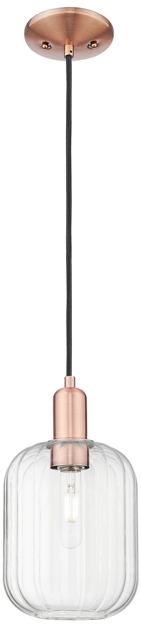 Preston 7"W Antique Copper Cord Hung Mini Pendant With Clear Jar Shade
