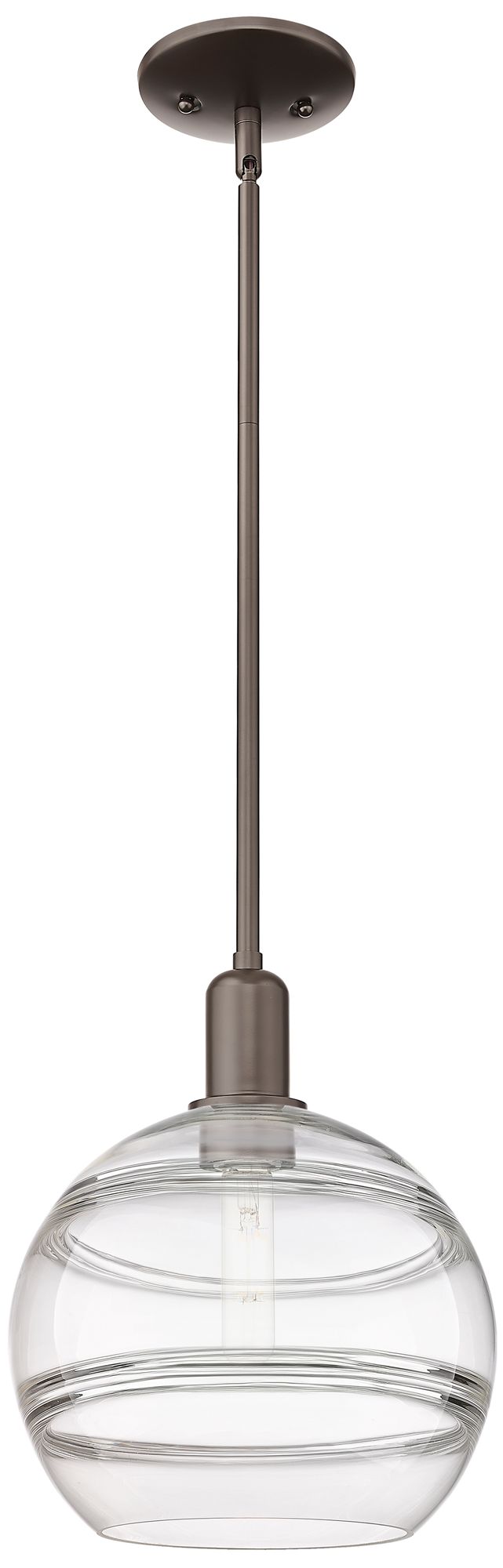 Arcadia Rochester 10"W Oiled Bronze Stem Mini Pendant w/ Clear Shade