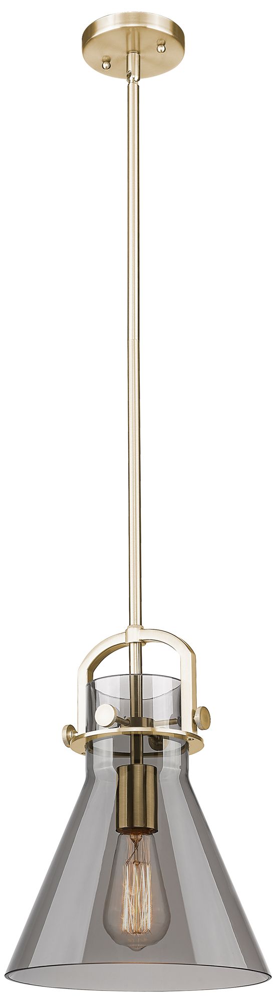 Newton Cone 10"W Champagne Stem Arch Mini Pendant w/ Smoke Shade