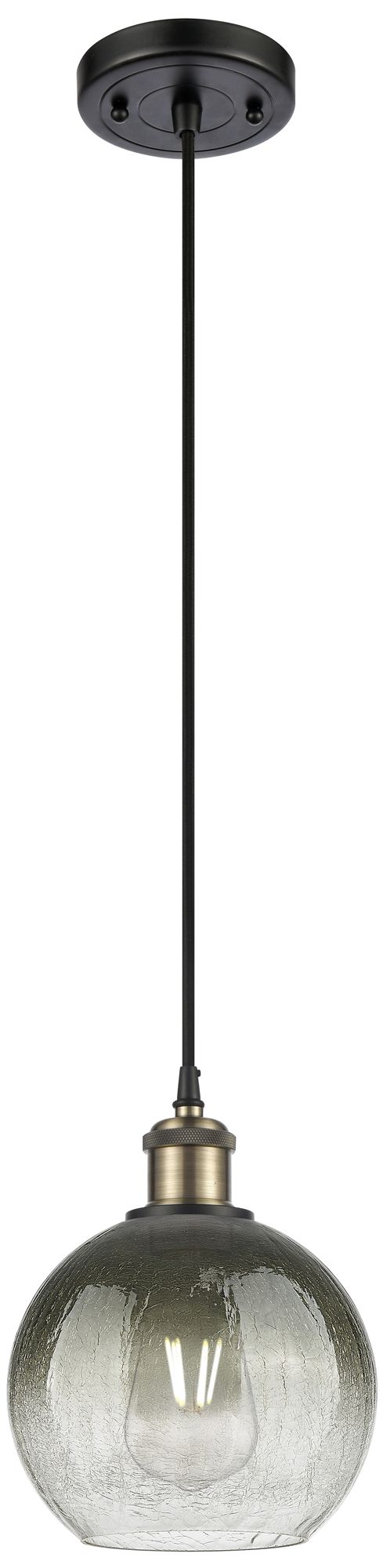 Ballston Brookhaven Globe 8"W Black Brass Cord Pendant w/ Slate Shade