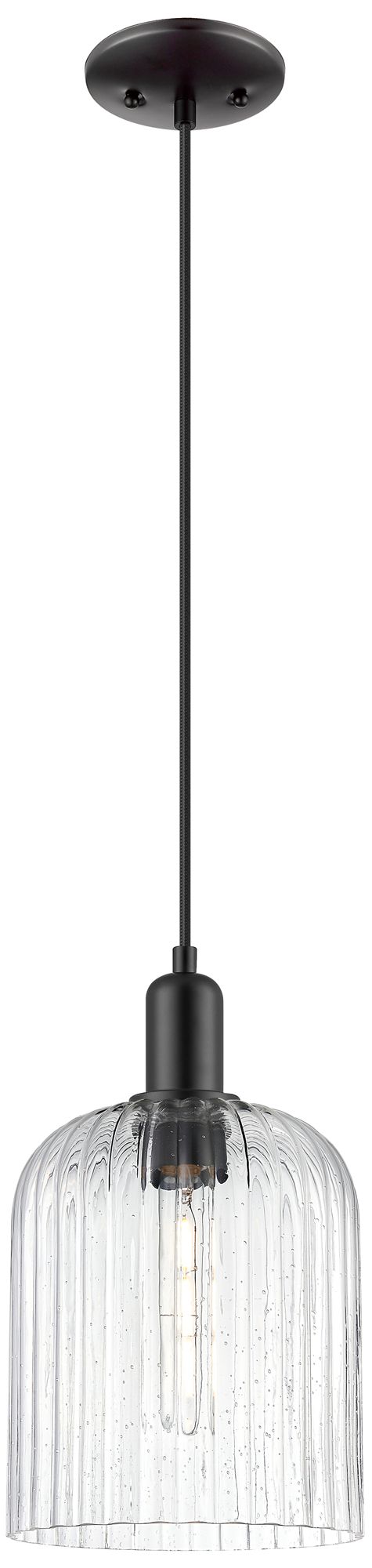 Downtown Bridal Veil 8"W Cord Black Mini Pendant w/ Seedy Swirl Shade