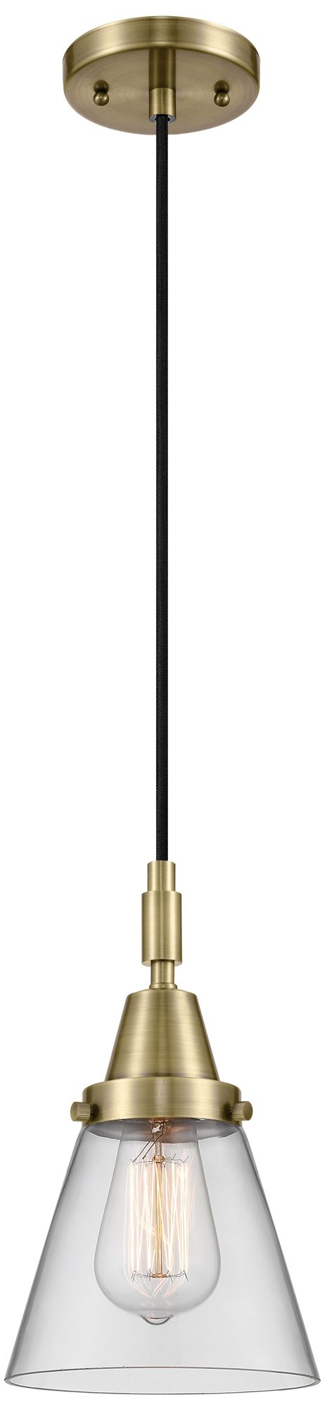 Downtown Caden Cone 6"W Cord Antique Brass Mini Pendant w/ Clear Shade