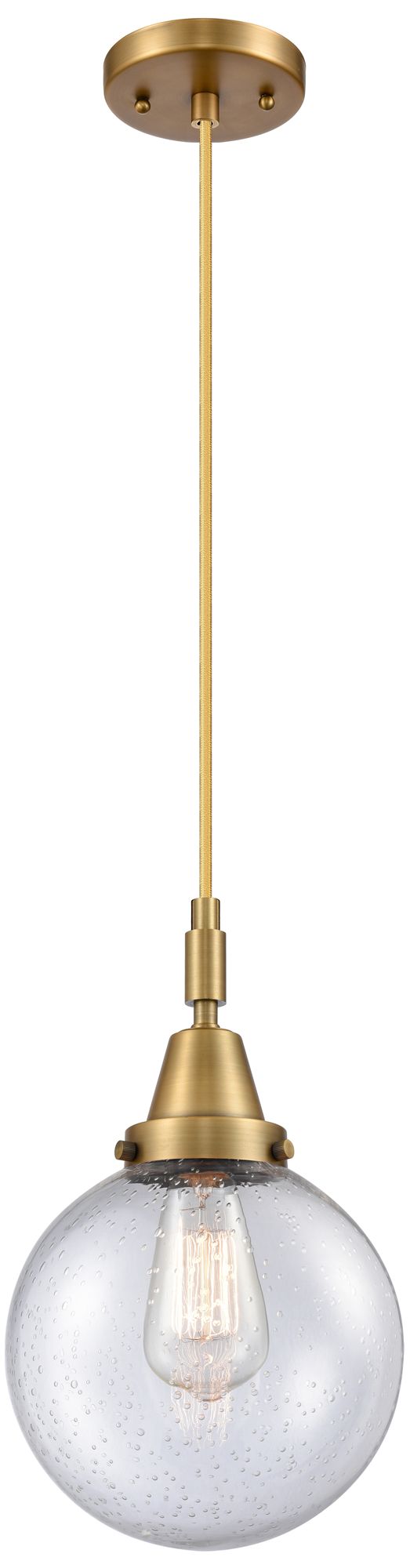 Downtown Caden Beacon 8"W Cord Brass Mini Pendant w/ Seedy Shade